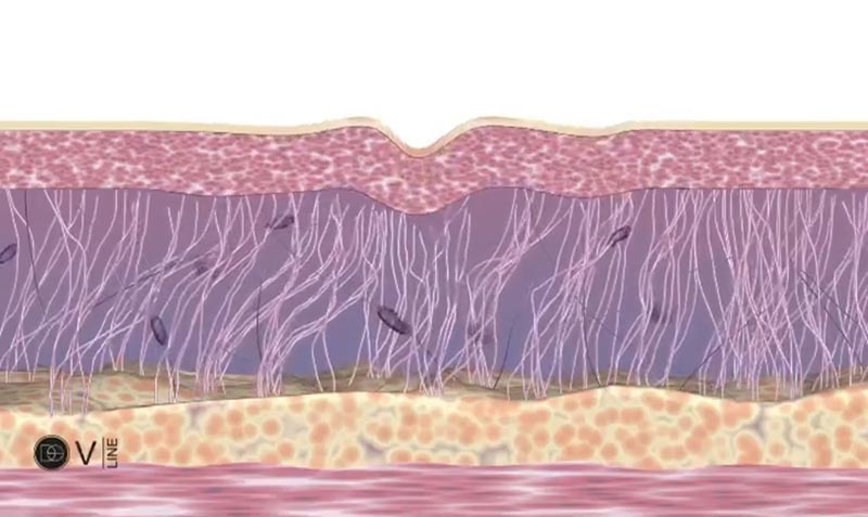 Bij deze cosmetische behandeling worden door een speciale techniek collageendraden aangebracht op/in de huid. Samen met een uniek stamcelserum boordevol werkstoffen, worden de gepatenteerde DSV line collageendraden in een warme huid opgenomen en weg gemasseerd. Door de absorptie van het collageen in de diepere huidlagen, geeft het de huid meer volume, vervagen fijne lijntjes en worden diepere rimpeltjes, minder diep. De huid is zichtbaar ontspannen en strakker.